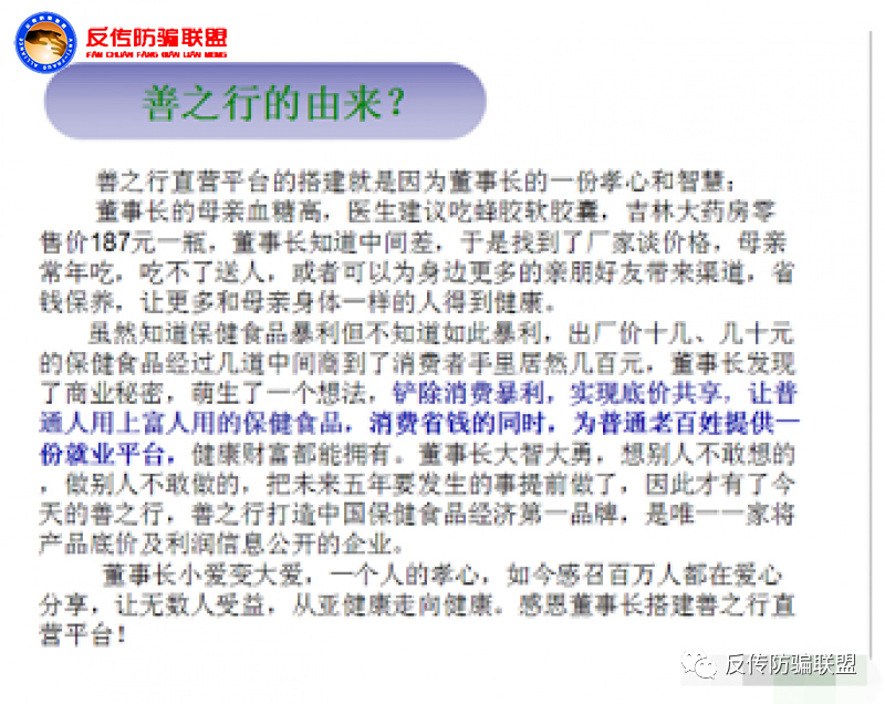 “善之行”产品虚假宣传,推广制度涉嫌传销