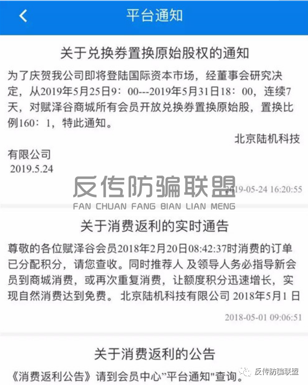 此后,据新浪潮报道,早在两年前,陆机科技旗下的“微客谷”电商平台便已被爆涉嫌传销。2018年11月,“微客谷”变更为“赋泽谷”的身份继续着之前的返利模式,定位为“中老年人商场”,用原始股和期权吸引消费者的目光。